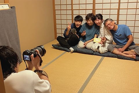 ステップ1〈実家式〉の鍵は、新婦からの修復の手紙。ご両親が複雑な気持ちにならないよう感情を整理する時間が必要と感じた私は、実家式を2日に分け、手紙は初日に読むよう変更。事前にご両親とオンラインで対話し、気持ちを受け入れる心支度をしてもらいました。そこでわかったのは、娘を大切に想い、悩みながら子育てをしてきたこと。それを伝え、新婦の不安を解消します。当日はスタッフを受け入れてもらうため一緒に居酒屋へ。チーム全員でゴールを思い浮かべ、空気を温めます。新婦の手紙に途中顔が曇る瞬間もありましたが、「言ってくれてありがとう」と答えたご両親。心支度を重ねたからこそでした。翌日はお祖母様のもとへ。感謝の想いを伝え、家族みんなが笑って祝う節目となりました。